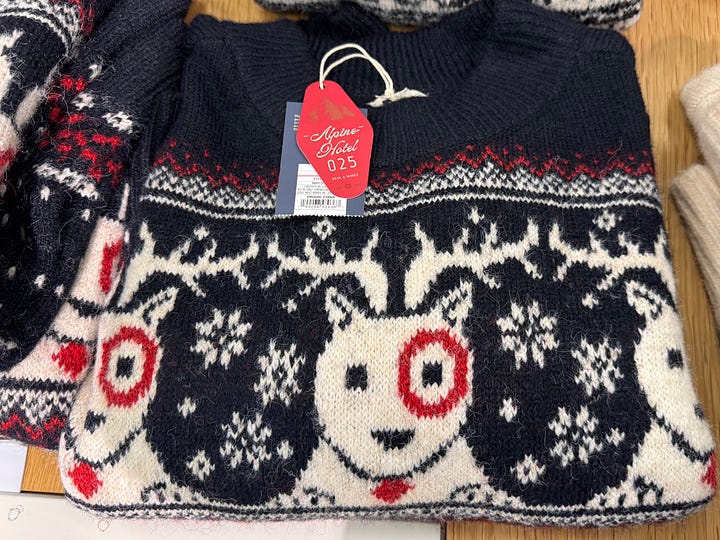 That grilled cheese tomato soup sounds like it could be good, that they should make a highly entertaining Brie, that Wicked branding has gone too far with cleaning projects, that this candle would look very odd only part of it is burned, and that the Target dog is not something I expected to find on a color work sweater