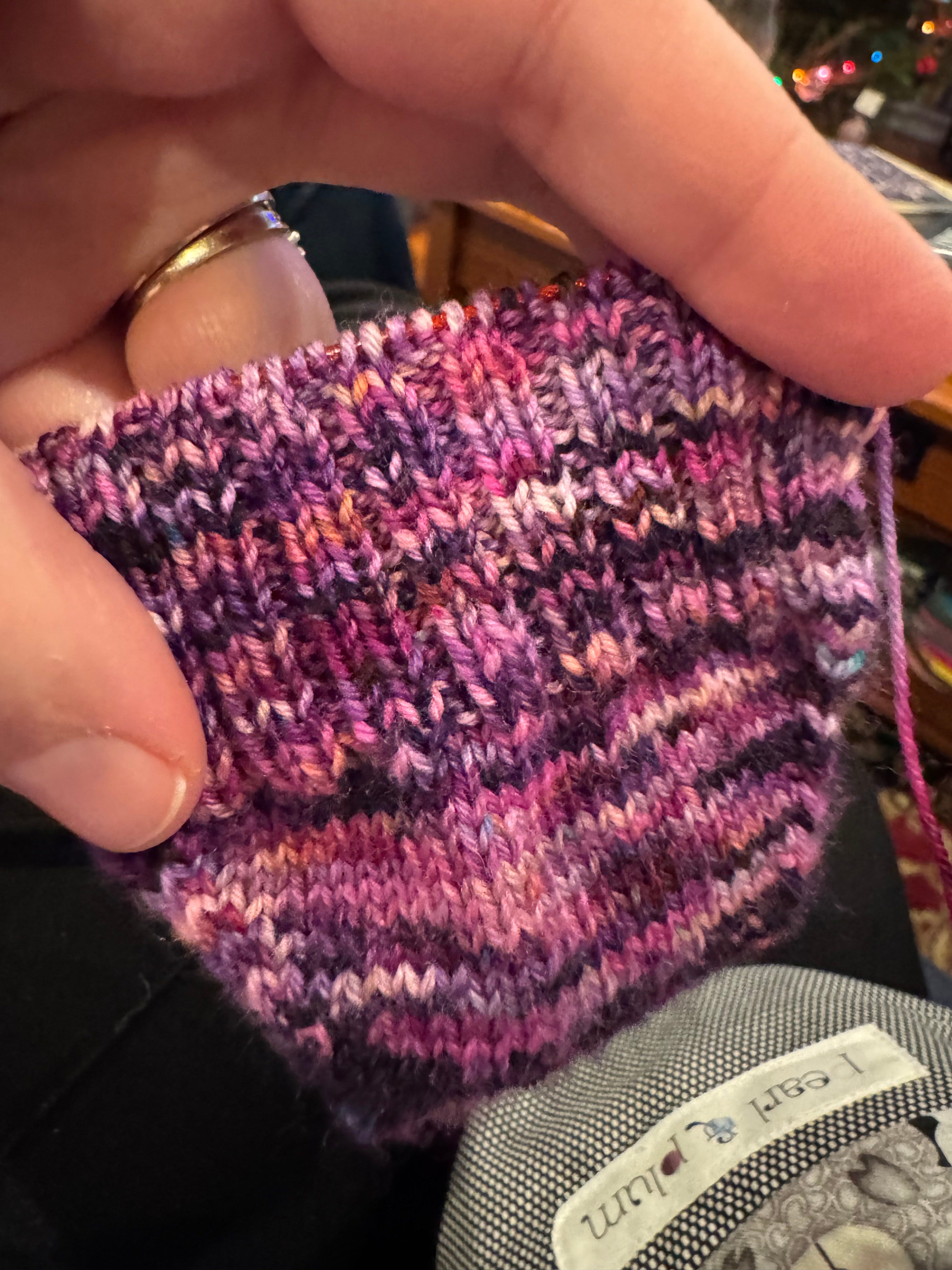 I’ve now got two crafty projects in work: a pair of socks for a coworker and a secret embroidery project. The socks are a basic 2x2 rib in the Smells Like Halloween colorway from Sock Obsession from several years ago. And I’m not sharing the embroidery project that I’m making up as a go along as it’s for a friend for Christmas.