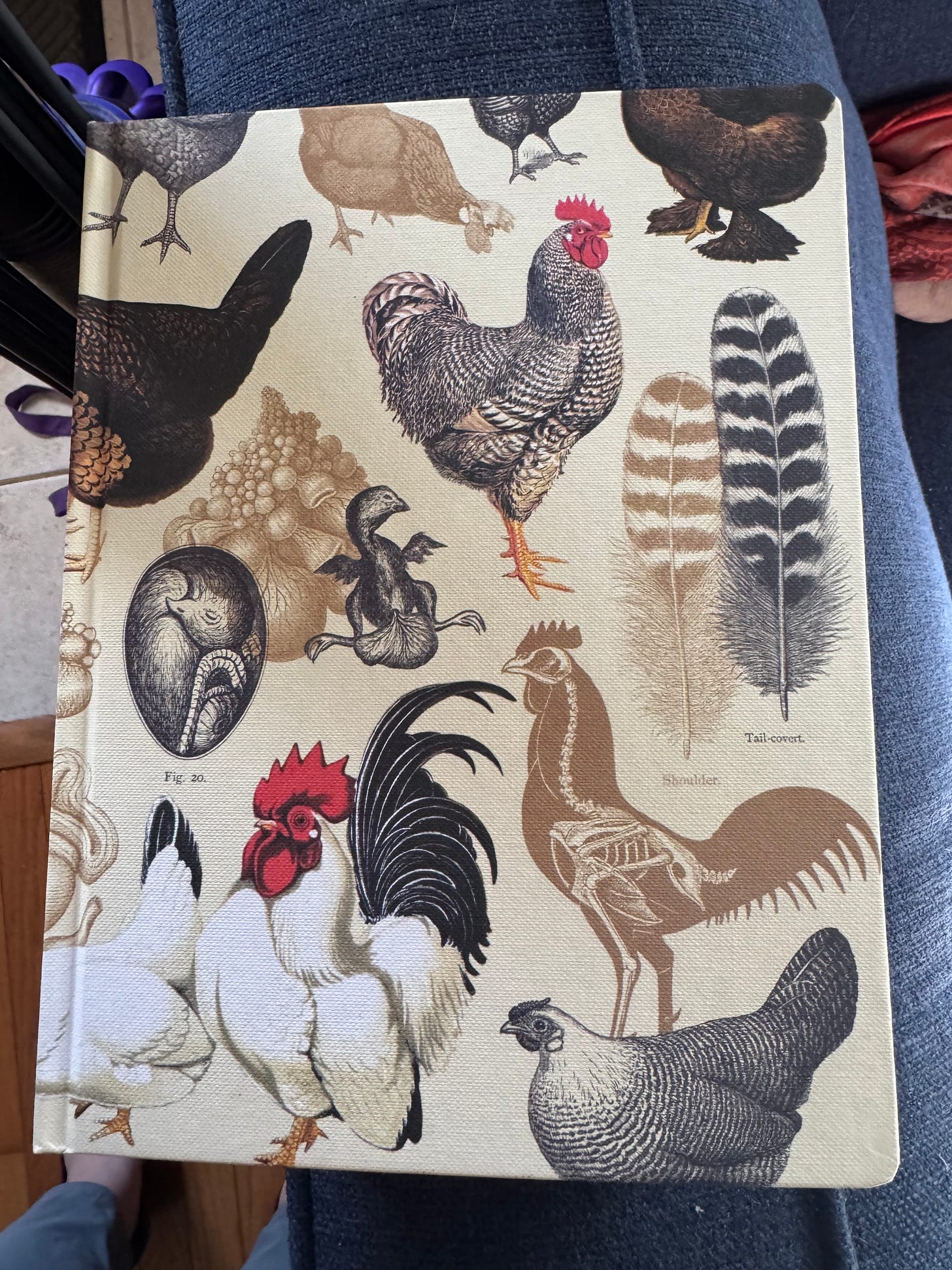 Last night I grabbed out my stickers and paper punches and even dug out a big glue stick and a double-sided tape dispenser to try my hand at this. Like I said the other day, part of me really wants to have a junk journaling that goes back and forth with a friend though that’ll wait a bit. Starting small with the unlined pages in my Alchemy journal as my practice pages..and starting to paste every other page of this chicken notebook together.