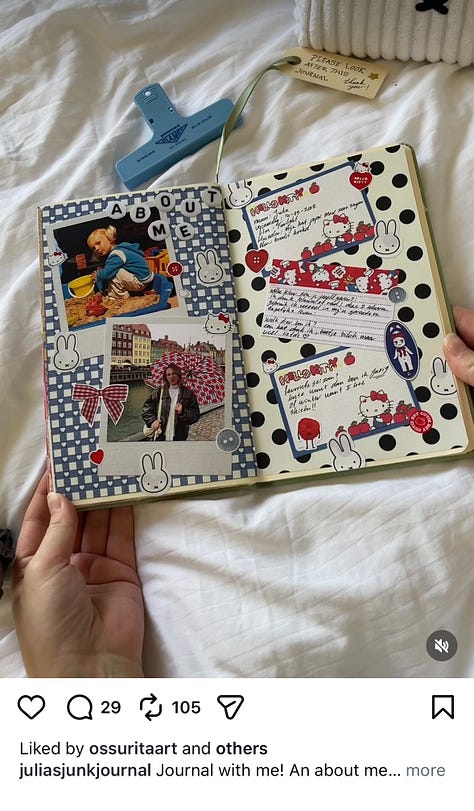 I don’t even know how it started, but a few days ago, I came across a post on Instagram or maybe here on Substack about junk journaling. Then, as it does, one like on a post lead to more posts and videos and now much of my feed is junk journaling. Yep, I’m obsessed.