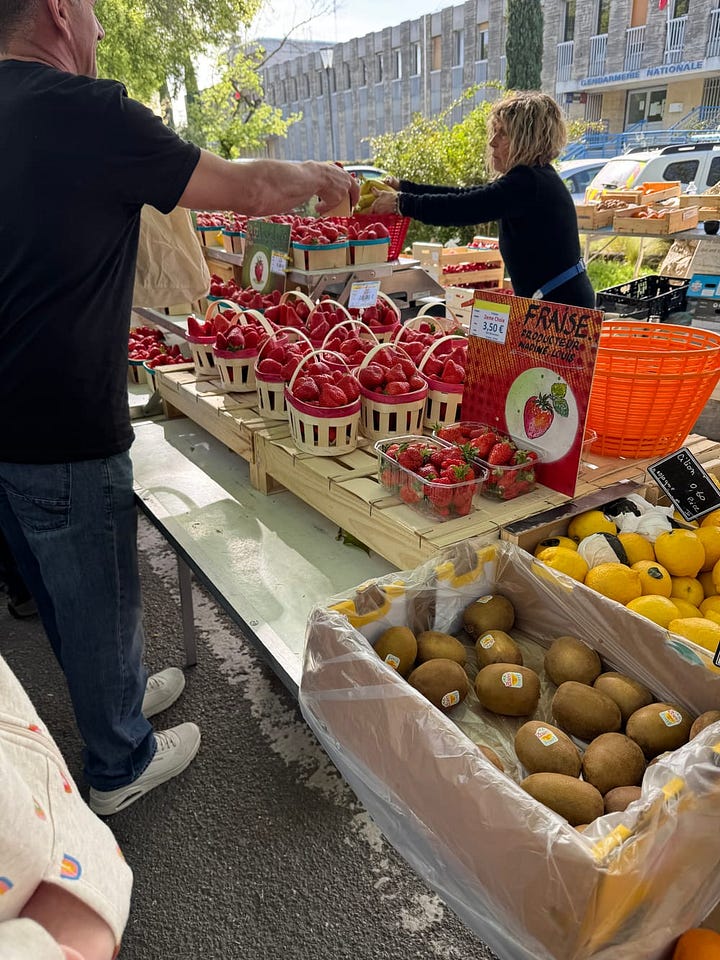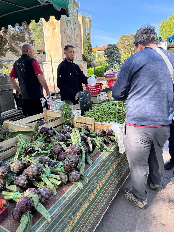 We wandered around the town’s market - why we went to Arles that particular day - and picked up a bunch of fruit and veggies. Carrots, asparagus, strawberries, oranges, and peas. Also three cheeses which is quite a feat given we tried way more varieties than that.