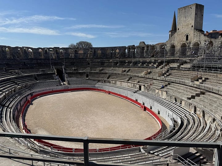 Matt is a devout follower of the Rick Steves travel books so, of course, he needed u to take the walking tour of the Arles old town from the book. The tour took us to a bunch of Roman ruins - an arena, a theater, fountain, underground caverns made to make the forum area nice and flat- and the cathedral with a cloister nearby.