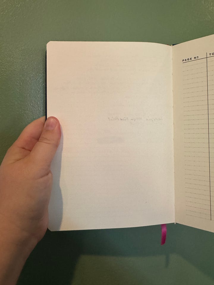 (Must admit I did put three small holes into the binding as I was hoping I could make it fit into a Murdy brand journal cover but it’s justttt too wide for that. Womp womp. Don’t think it’ll make much of a difference, but wanted to note this now so I don’t forget.)