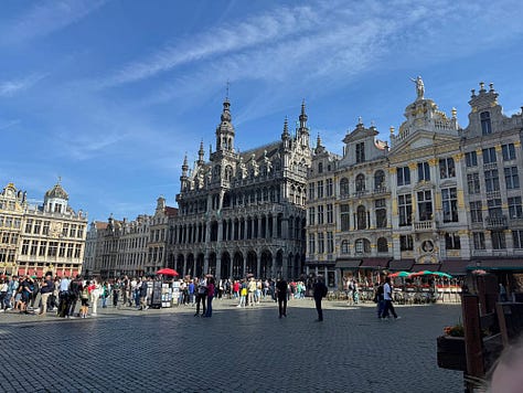 We grabbed an Uber before 9 to take us to the train station. After a quick stop to pick up breakfast and drinks, we boarded a train to Brussels Centrum. We accidentally took spots in the quiet car which most of us were fine with, though it wasn’t on purpose.